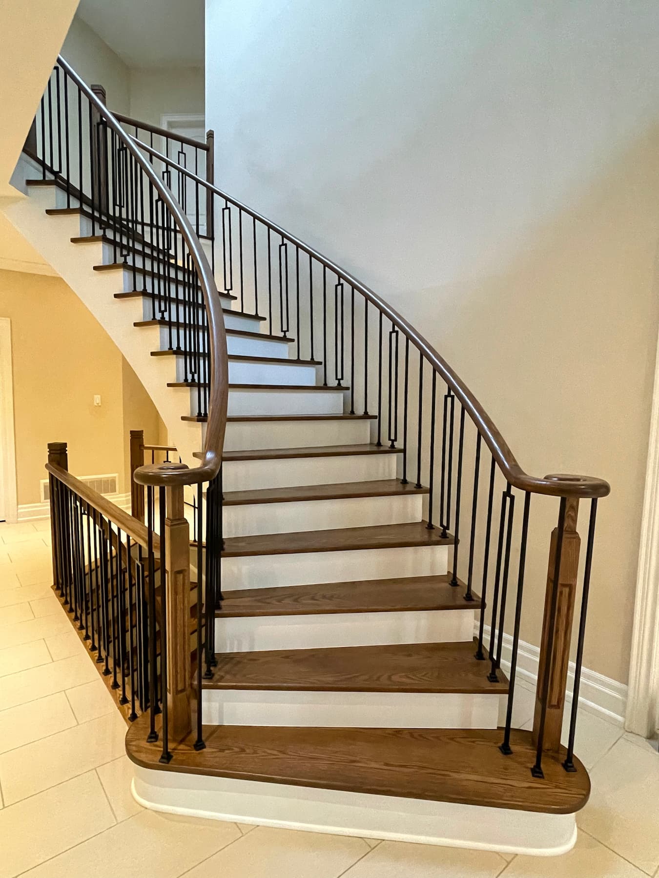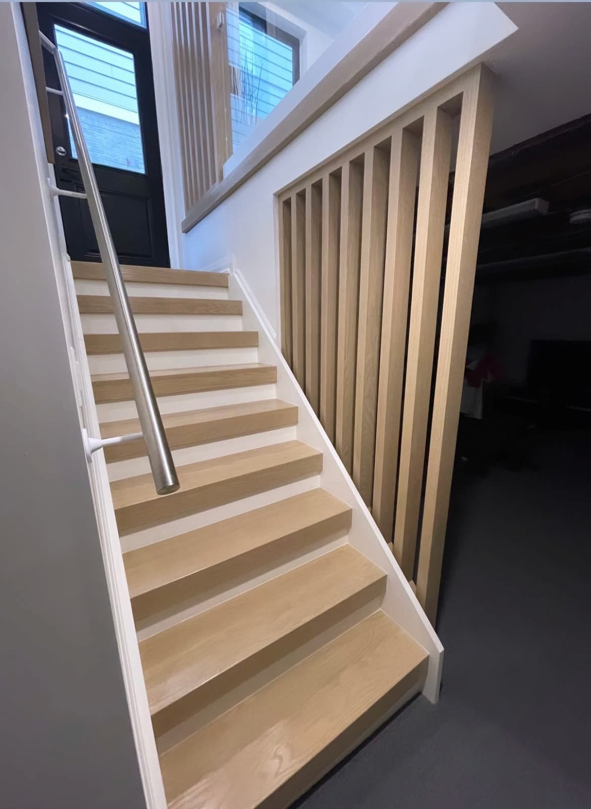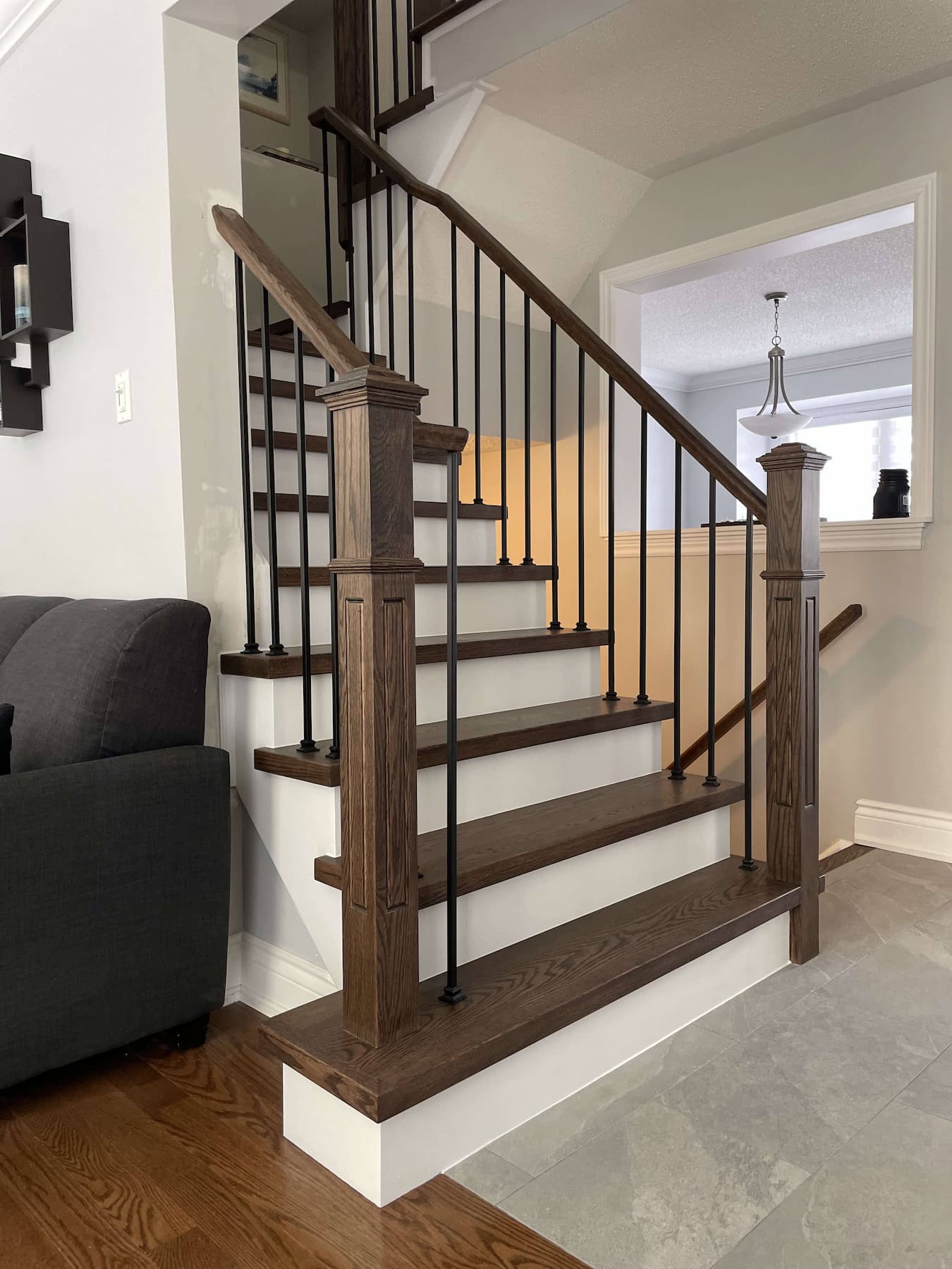 The refinishing option involves modifying the colour of your existing wooden steps, typically to match your newly installed floors, for example.