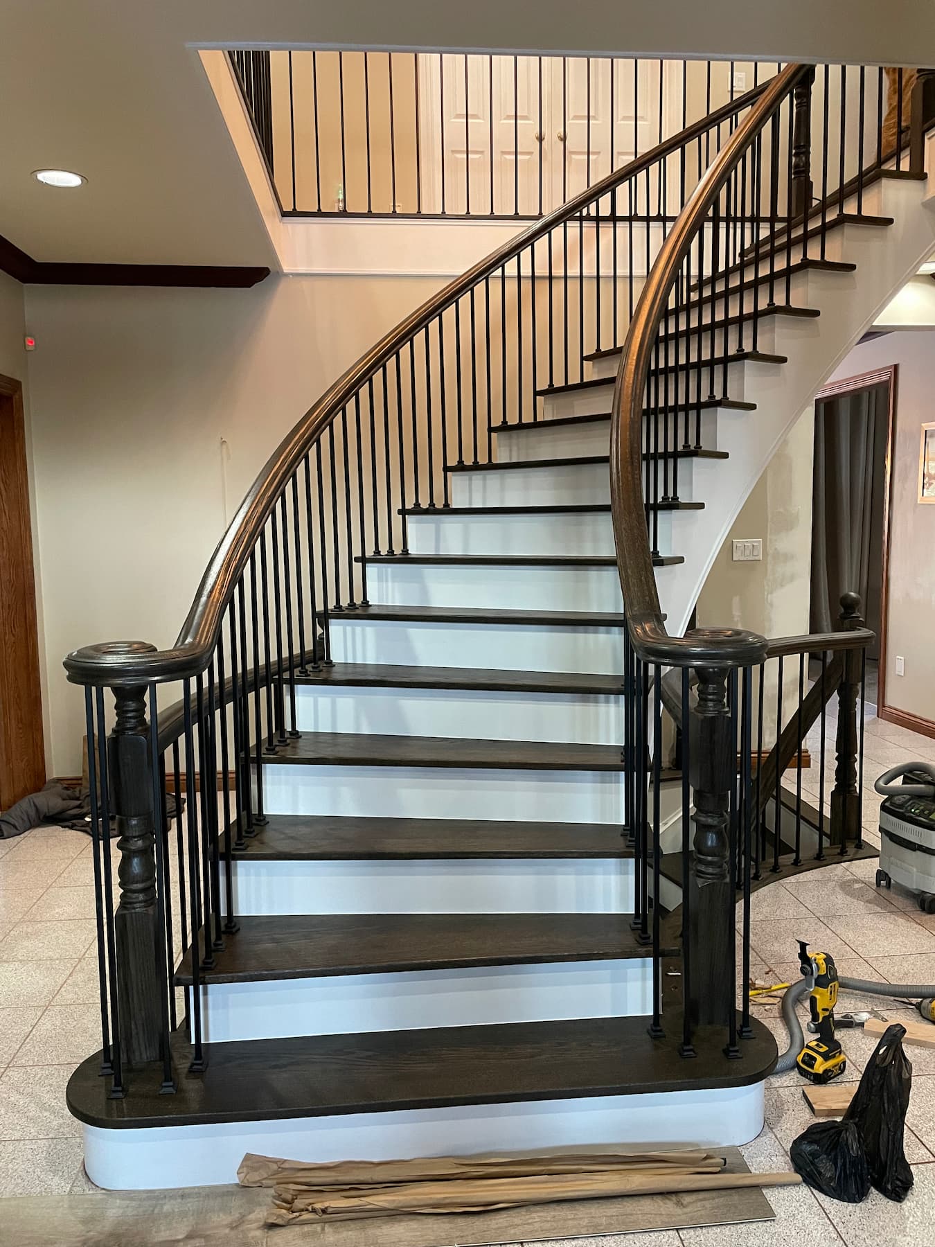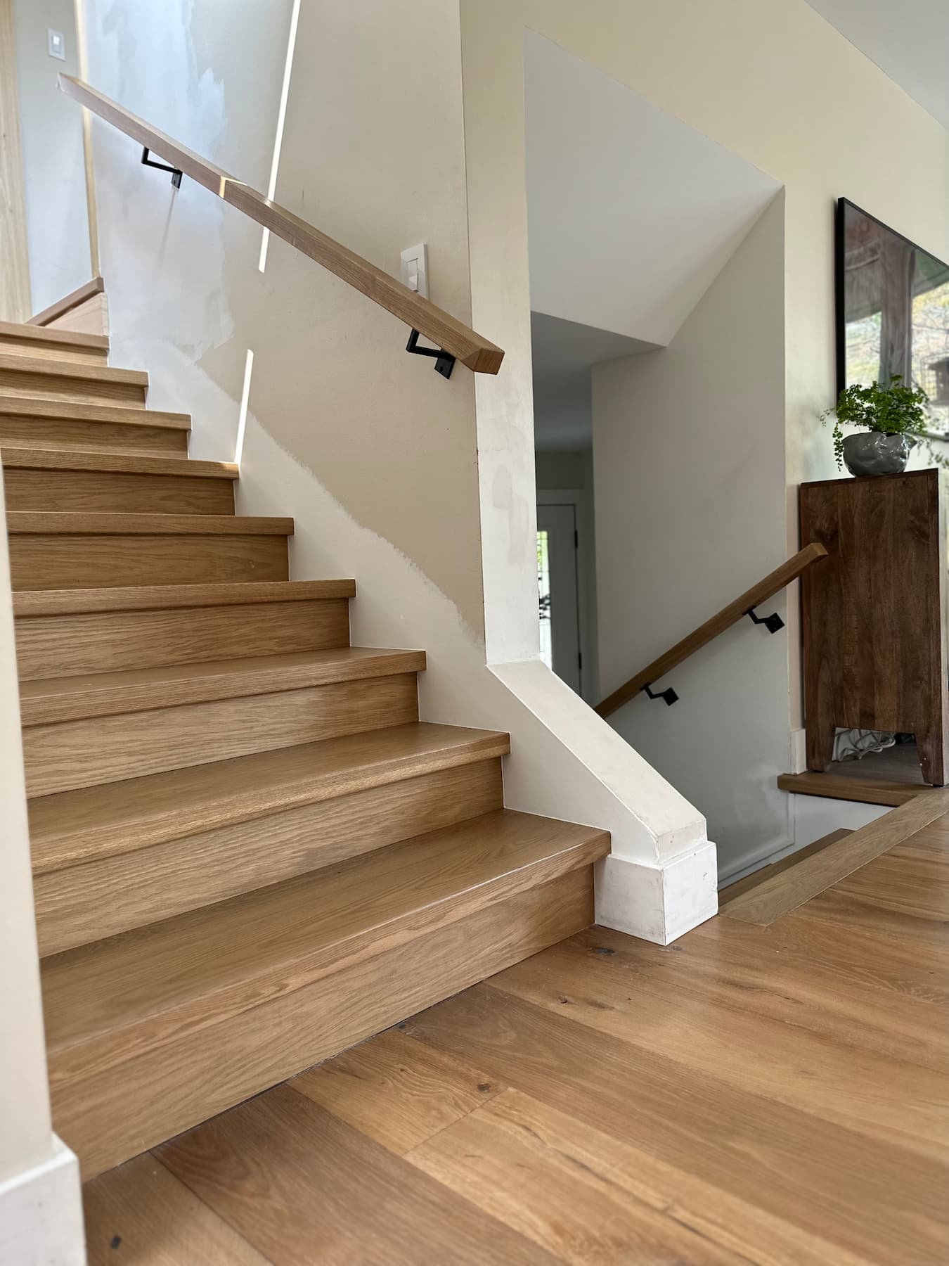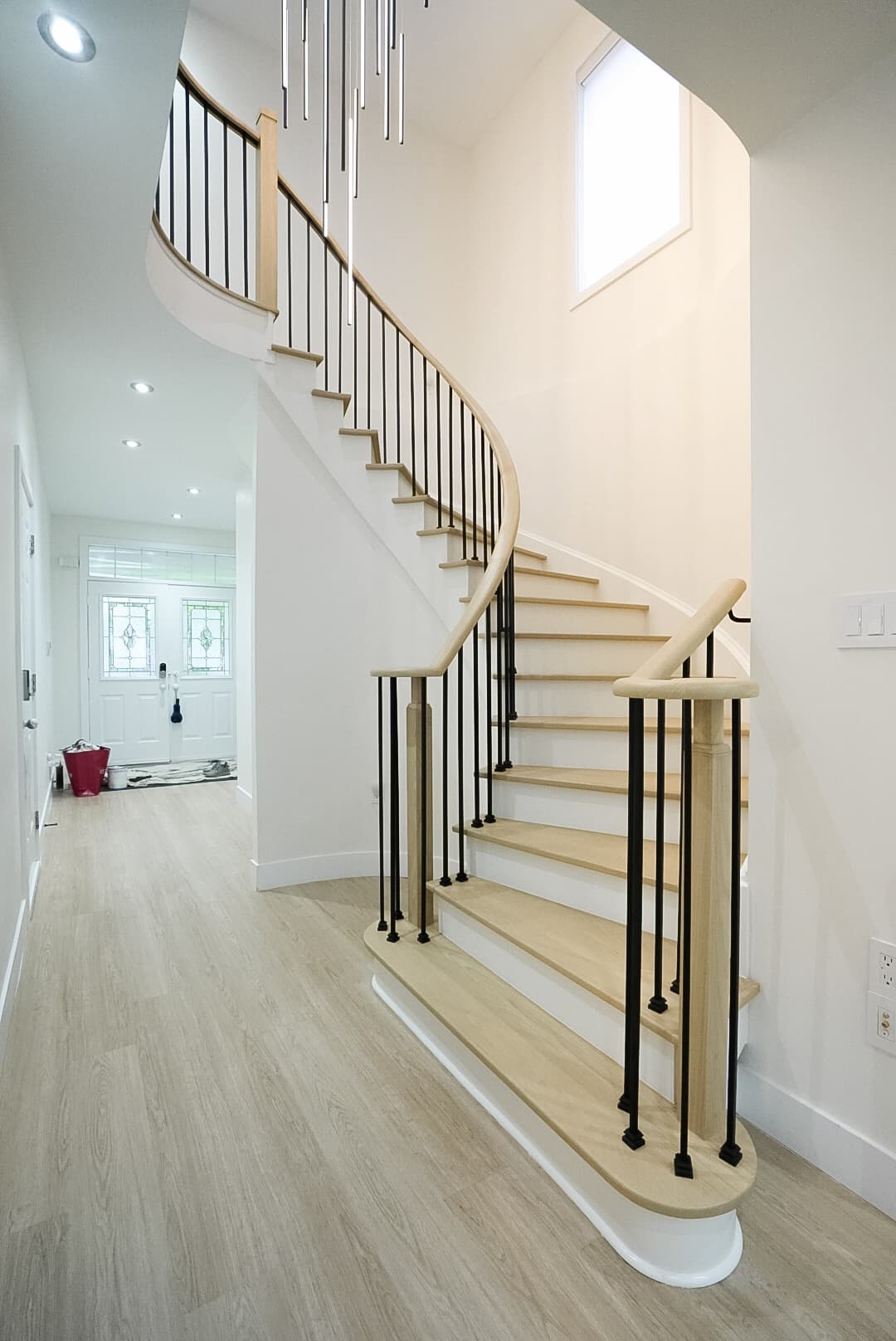 The refinishing option involves modifying the colour of your existing wooden steps, typically to match your newly installed floors, for example.